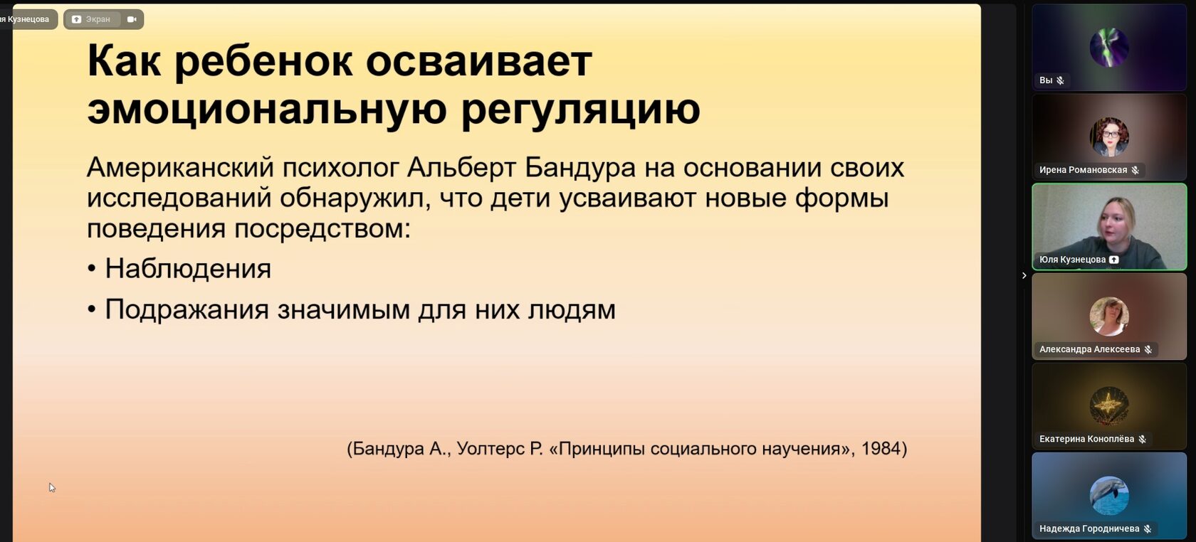 Провели встречу «Спроси эксперта» для членов Ассоциации и Общества. Сегодня состоялась встреча с психологом Ю.С. Кузнецовой.