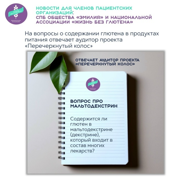 Друзья, в рубрике "ОТВЕЧАЕТ АУДИТОР ПРОЕКТА "ПЕРЕЧЕРКНУТЫЙ КОЛОС" в членской группе опубликовали ответ на следующий ВОПРОС: Содержится ли глютен в мальтодекстрине (декстрине), который входит в состав многих лекарств?