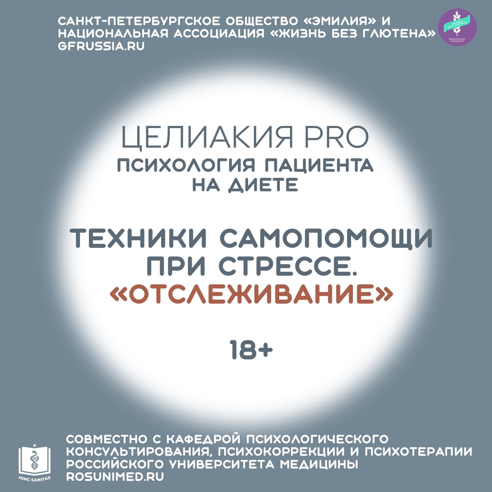 Опубликовали очередную технику самопомощи при стрессе в рамках совместного проекта с Кафедрой психологического консультирования, психокоррекции и психотерапии Российского университета образования (Москва) «Целиакия PRO. Психология пациента на диете».